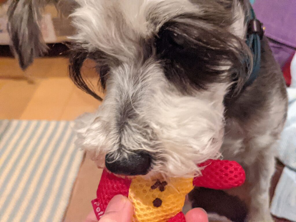 この犬のおもちゃは、海ちゃんにとっての「安心の拠り所」です。
