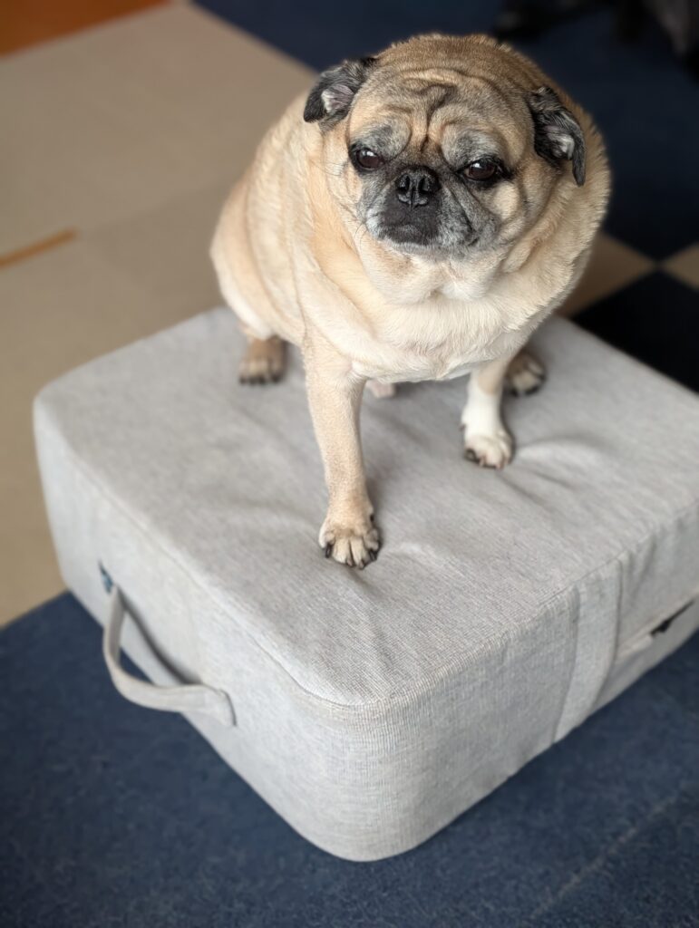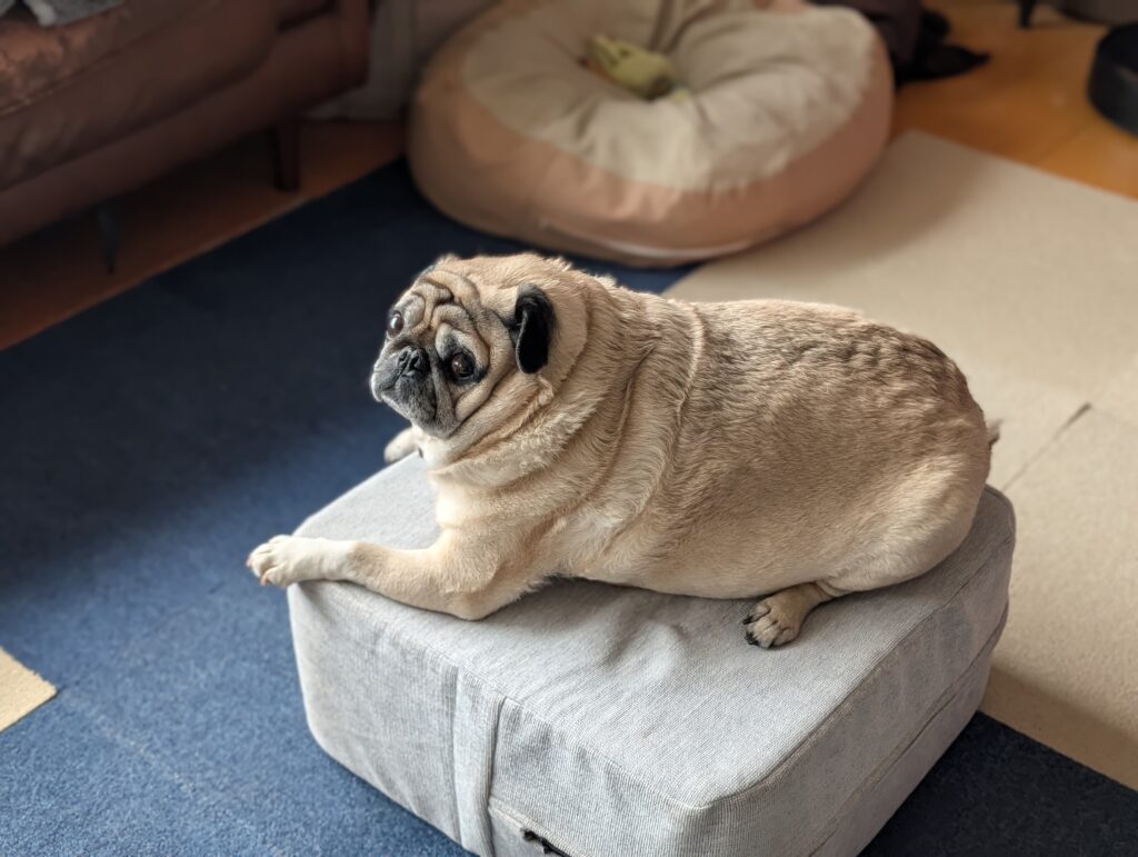 なぜか、この柔らかくもないブツが、パグ海にとっての特等席に早変わりしてしまいました。